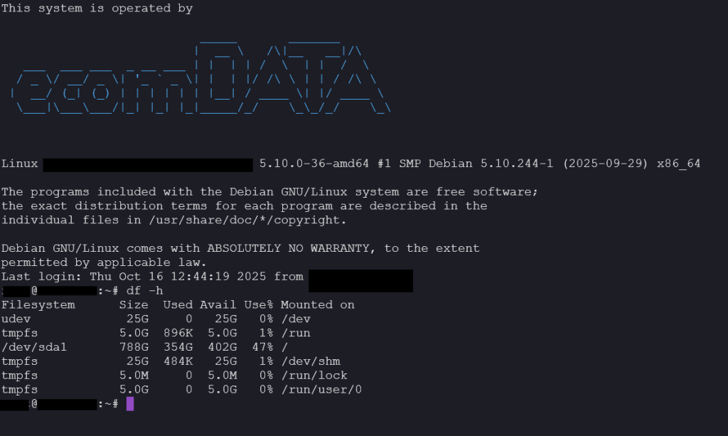 In der Ausgabe sehen Sie die verfügbaren Datenträger und Partitionen Ihres Servers.
