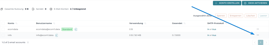 Suchen Sie das gewünschte E-Mail-Konto in der Liste und klicken Sie auf die drei Punkte (⋯) rechts neben der E-Mail-Adresse.