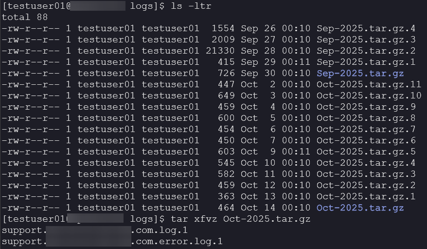 Zeigen Sie die archivierten Logdateien an:
