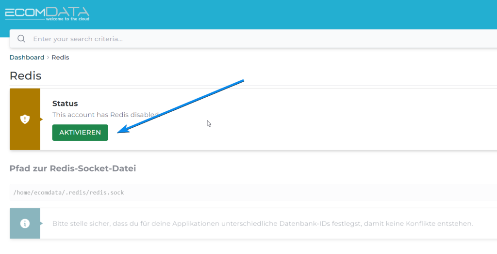 • Prüfen Sie, ob Redis aktiviert ist.