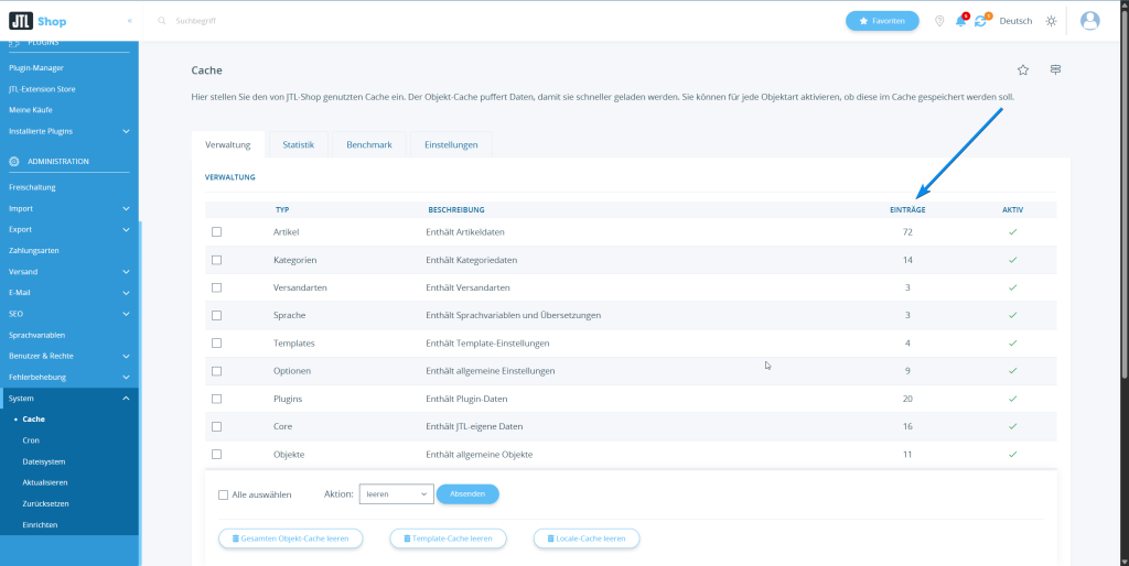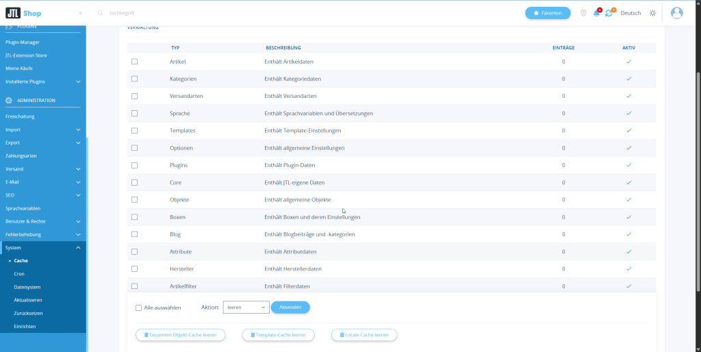 • Navigieren Sie zu System → Cache.