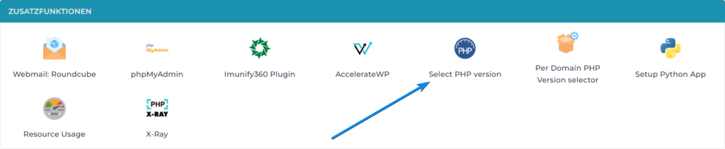 • Navigieren Sie zu PHP-Selektor / Select PHP Version.