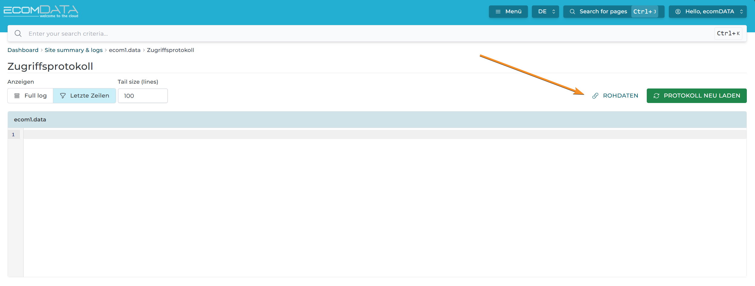 Hier können Sie sowohl das „Zugriffprotokoll“ als auch das „Fehlerprotokoll“ in Echtzeit einsehen: